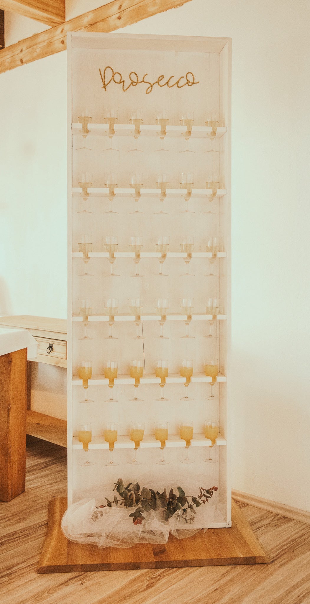 Unsere Prosecco-Wall kommt mit allem, was Sie für eine beeindruckende Präsentation benötigen: